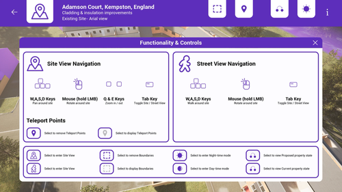 The user is able to navigate around the property in either birds-eye view or first person based on their preference; allowing for full flexibility moving around the visualisation.